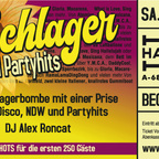 Am Samstag, dem 7. März gibt es Schlager, gemischt mit Pop, Disco, NDW und Partyhits die jeder kennt. Von Atemlos, Fiesta Mexicana, dem Bett im Kornfeld, zwei kleine Italiener, knallrotes Gummiboot, Hey Baby über Y.M.C.A., DaddyCool, Dancing Queen, den 99 Luftballons und einem absoluten Skandal im Sperrbezirk, bis zu Gloria, Macarena, What is Love, Sing Hallelujah oder auch RamaLamaDingDong und vielen mehr. DJ Alex Roncat sorgt für den Partysound.