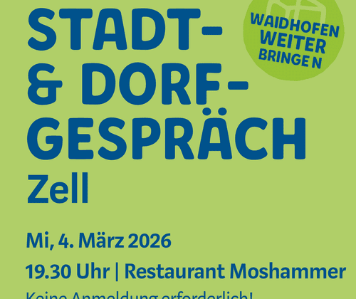 Waidhofen an der Ybbs lädt im März 2026 zu Stadt- & Dorfgesprächen – einem Beteiligungsformat, das den offenen Austausch zwischen Bürgerinnen und Bürgern, Verwaltung und Politik ermöglicht.