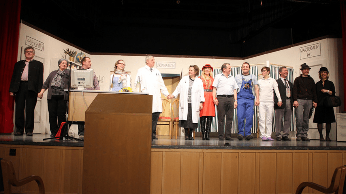 DarstellerRosa Schulze, Patientin - Barbara AppesbacherKarin Kehrer, "Mädchen für alles" - Renate BraunstorferDagmar Huber, Patientin und Hobbyköchin - Anita RedlSabrina Schachner, Assistenzärztin - Ursula BahrRoland Meister, Schönheitschirurg - Stefan DurkovicKuno von Kainberg, Künstler - Ekkehard KunzeHerlinde von Hohenstein, Adelige - Susanne GadocherMoritz Engl, Heiratsschwindler - Helmut KeuschnigArno Sacher, Polizist und Bruder der Assistenzärztin - Franz RiegerTilly König, Tochter eines reichen Imbisskettenbesitzers - Martina SchöndorferSpielleitungCharlotte HillebrechtSouffleuseBarbara GandlAudio- und Viedotechnik Anton PfeilKulisseCharlotte HillebrechtHelmut KeuschnigEinlassElfriede KeuschnigUrsula LeitnerMatthias Leitner