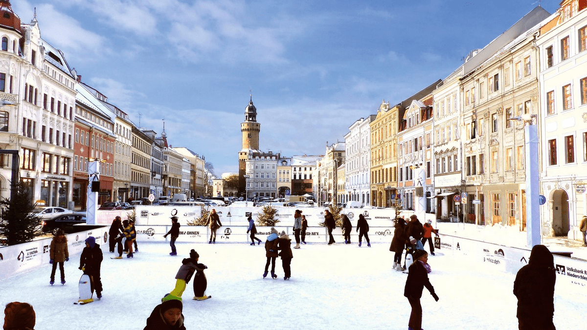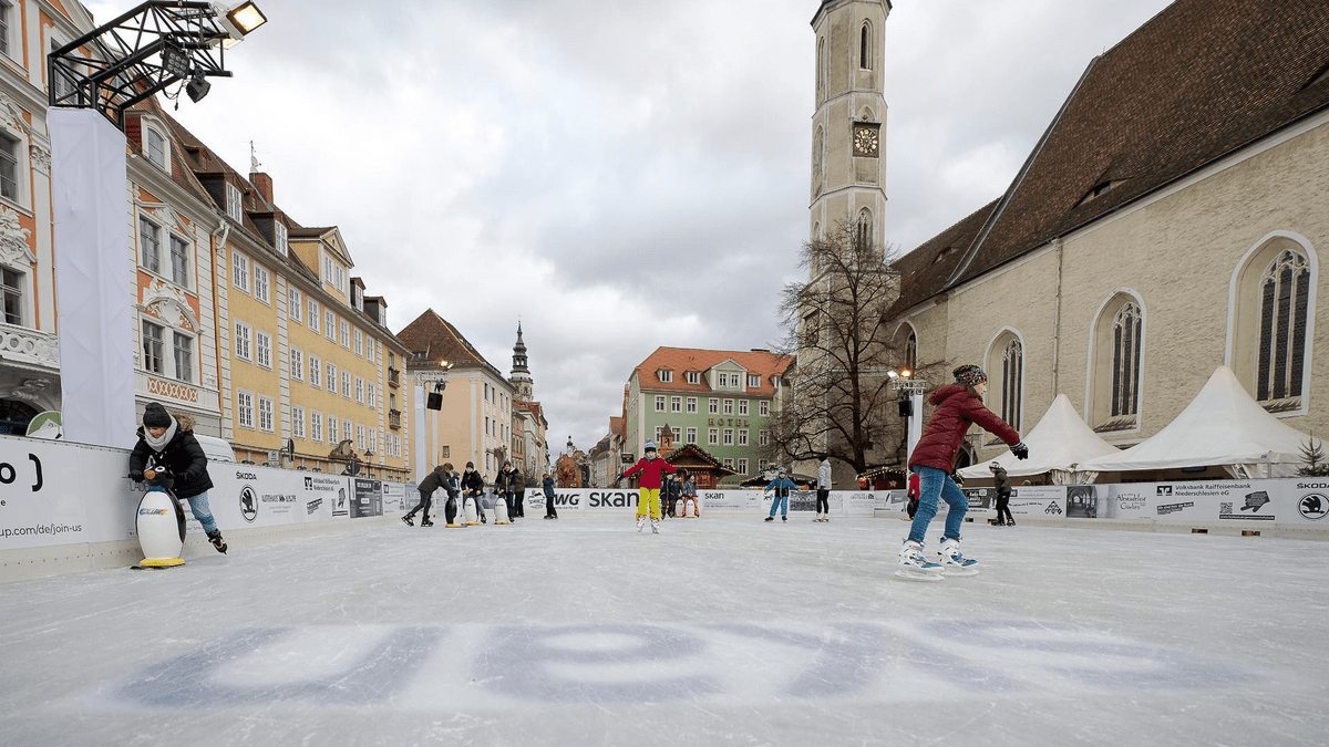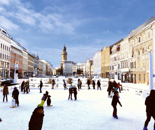 In der einzigartigen Kulisse des Obermarktes in Görlitz können Schlittschuhfans ihre Pirouetten drehen. Auf einer Fläche von 400 Quadratmetern kann dann während der Marktzeit Schlittschuh gelaufen werden. In einer beheizten Hütte neben der Eisfläche kann man sich bei einem heißen Getränk aufwärmen und dem regen Treiben auf der Eislaufbahn zusehen.