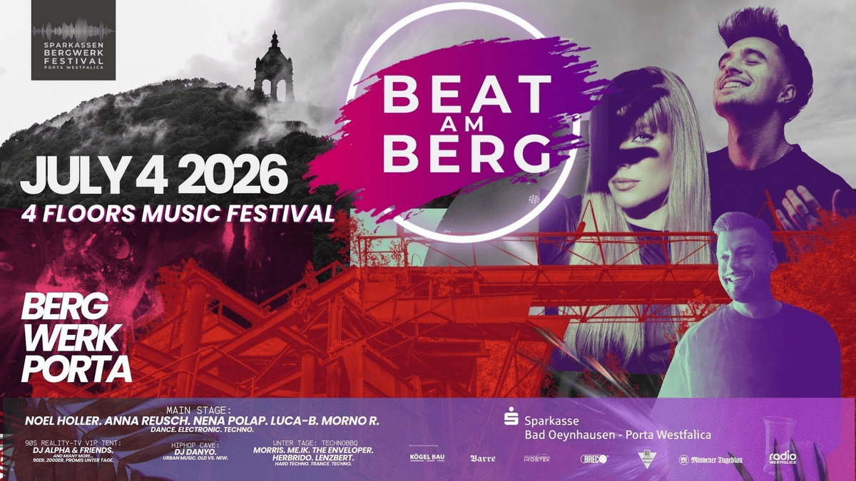 Beim Sparkassen Bergwerk Festival 2026 verschmelzen pulsierende elektronische Beats mit dem faszinierenden Industrieambiente des Besucher-Bergwerks Kleinenbremen. Inmitten historischer Kulissen entsteht ein einzigartiges Zusammenspiel aus Klang, Licht und Atmosphäre, das Musikliebhaber und Technikfans gleichermaßen begeistert.