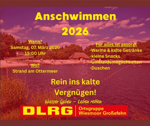 Rein ins kalte Vergnügen! Wann? Samstag, 07. März 2026 15:00 Uhr Wo? Strand Ottermeer Für alles ist gesorgt: - Warme & kalte Getränke - kleine Snacks - Umkleidemöglichkeiten - Duschen