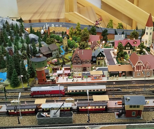 Es gibt eine große H0-Anlage mit vielen Extras zu sehen. Eine Spielanlage (Gartenbahn) für Kinder kann genutzt werden und es gibt eine Ü-Ei Modellbahnanlage zu bestaunen. Die Mitglieder sind dabei neue Anlagen aufzubauen. Kommt vorbei und seht selbst.
