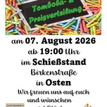 Es ist wieder soweit, die Verteilung der Preise und die Ziehung der Tombola als Abschluss unseres Schützenfestes steht an. Wir drücken allen Teilnehmern die Daumen und freuen uns auf einen schönen Abend.