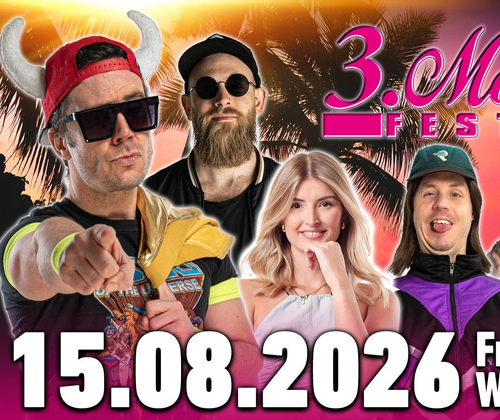 Feiere mit uns das 3.Mallorca Festival in Wiesmoor am 15.08.2026! Tauche ein in die lebendige Welt der Partymusik und genieße einen unvergesslichen Abend mit den heißesten Stars der Mallorca-Szene. Mit dabei 2026: Lorenz Büffel, Calvin Kleinen, Buddy Ogün, Felix Harrer, Ingo ohne Flamingo und Caro Winter. Feiere und tanze den ganzen Tag lang zu den Hits, die Mallorca zu einem der beliebtesten Partyziele gemacht haben. Egal, ob du ein echter Fan der Mallorca-Musik bist oder einfach nur eine unvergessliche Nacht voller Spaß und guter Laune erleben möchtest - das Mallorca Festival in Wiesmoor ist der perfekte Ort dafür. Besorge dir jetzt deine Tickets und erlebe eine Party, die du so schnell nicht vergessen wirst. Sichere dir deinen Platz und sei dabei, wenn die Stars der Mallorca-Szene die Bühne erobern. Das Mallorca Festival in Wiesmoor - feiere mit uns den Sommer in bester Urlaubsstimmung! Einlass ab 13:00 Uhr, Beginn: 15:00 Uhr Zusatz: Eltern haften für ihre Kinder. Für die Veranstaltung gibt es grundsätzlich keine Altersbeschränkung, wir empfehlen aber den Zugang ab 16 Jahren. Kinder und Jugendliche bis 16 Jahren erhalten nur Eintritt in Begleitung eines Erwachsenen. Hinweis: Jeder Künstler kann mal krank werden, oder einen TV Auftritt haben und kann eventuell ausfallen, somit kann es jederzeit passieren, dass eine Programm- & Künstleränderung stattfindet.