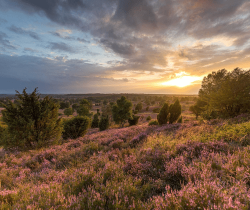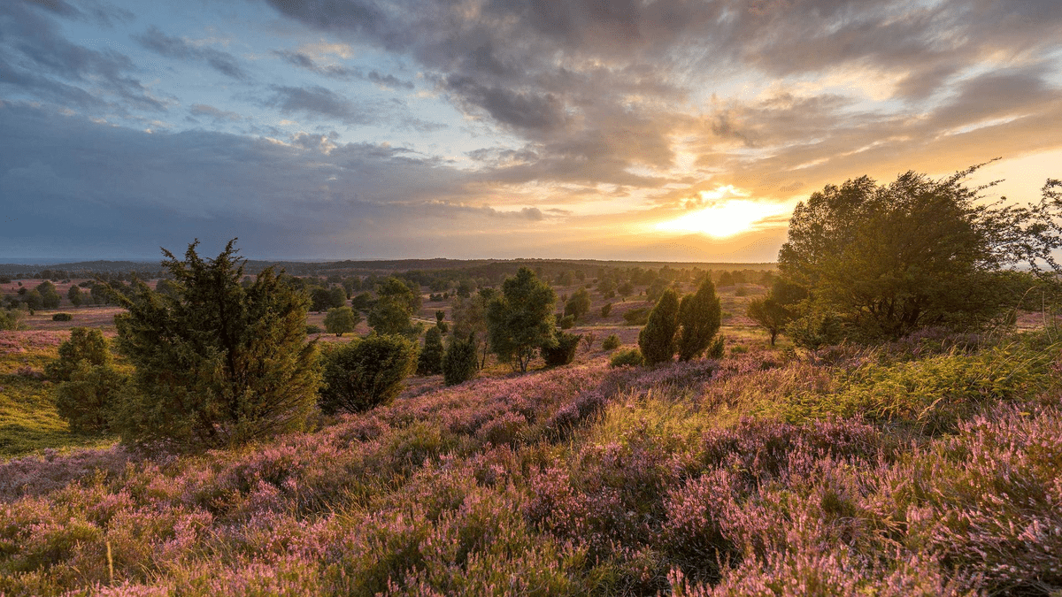 Wenn die Heide in voller Blüte steht Wenn sich im Spätsommer die Landschaft der Lüneburger Heide in ein lilafarbenes Blütenmeer verwandelt, beginnt die wohl schönste Zeit des Jahres in Norddeutschlands größter zusammenhängender Heidelandschaft: die Heideblüte. Während der Heideblüte färben Millionen kleiner Blüten die weitläufigen Heideflächen in kräftige Lilatöne, unterbrochen vom satten Grün der Wacholder und Kiefern sowie dem hellen Weiß der Birken.   Wann blüht die Heide? Die Hauptblütezeit der Besenheide liegt traditionell zwischen Anfang August und Mitte September. Einer alten Heidjer Faustregel zufolge blüht die Heide vom 08.08. bis zum 09.09. – je nach Witterung kann die Blüte jedoch bereits Ende Juli beginnen oder bis in den späten September andauern.   Wo lässt sich die Heideblüte besonders gut erleben? Besonders eindrucksvoll ist das Naturschauspiel in den großen Heideflächen des Naturschutzgebiets Lüneburger Heide rund um den Wilseder Berg, den Totengrund oder die Undeloher Heide. Auch in der Südheide bei Müden (Örtze), Faßberg oder Hermannsburg lassen sich zahlreiche blühende Heideflächen entdecken.   Aktuellen Blütenstand im Heideblütenbarometer prüfen Da der Beginn und Verlauf der Heideblüte stark von den klimatischen Bedingungen abhängen, empfiehlt sich vor der Anreise ein Blick in das aktuelle Heideblütenbarometer. Dort wird der Blütenstand von Juli bis September regelmäßig dokumentiert und es werden Empfehlungen gegeben, welche Heideflächen aktuell besonders schön blühen: Aktueller Stand der Heideblüte: https://www.lueneburger-heide.de/heidebluetenbarometer Weitere Informationen zur Heideblüte sowie Tipps zur Planung Ihres Aufenthalts finden Sie unter: https://www.lueneburger-heide.de/   Hinweise zum Naturschutz Viele Heideflächen stehen unter Naturschutz. Besucher werden gebeten, die Wege nicht zu verlassen, Hunde anzuleinen und keinen Müll in der Natur zu hinterlassen, um dieses einzigartige Landschaftsbild dauerhaft zu erhalten.