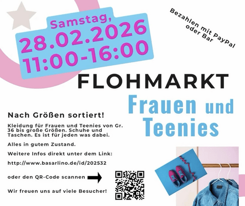 .... ab Größe 36 bis große Größen. Außerdem Schuhe und Taschen. Alles nach Größen sortiert. Kassiert wird zentral an einer Kasse. Gezahlt werden kann über PayPal oder in Bar. Weitere Infos unter www.basarlino.de/KH57