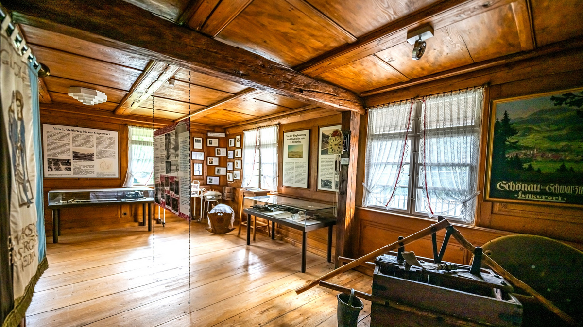 Das Heimatmuseum Klösterle beherbergt alte Schriften, Urkunden, Geräte und Gebrauchsgegenstände aus der Region. Anschaulich - auch an Modellen - wird in den alten Räumlichkeiten dargestellt, wie die Menschen früher lebten, wie und wo sie arbeiteten und gibt Auskunft über ihre Sitten, Bräuche und Religion. Neu ist eine Leseecke mit historischen Büchern und Bildbänden. Führungen ab 4 Personen auf Anfrage bei der Tourist-Information Schönau.