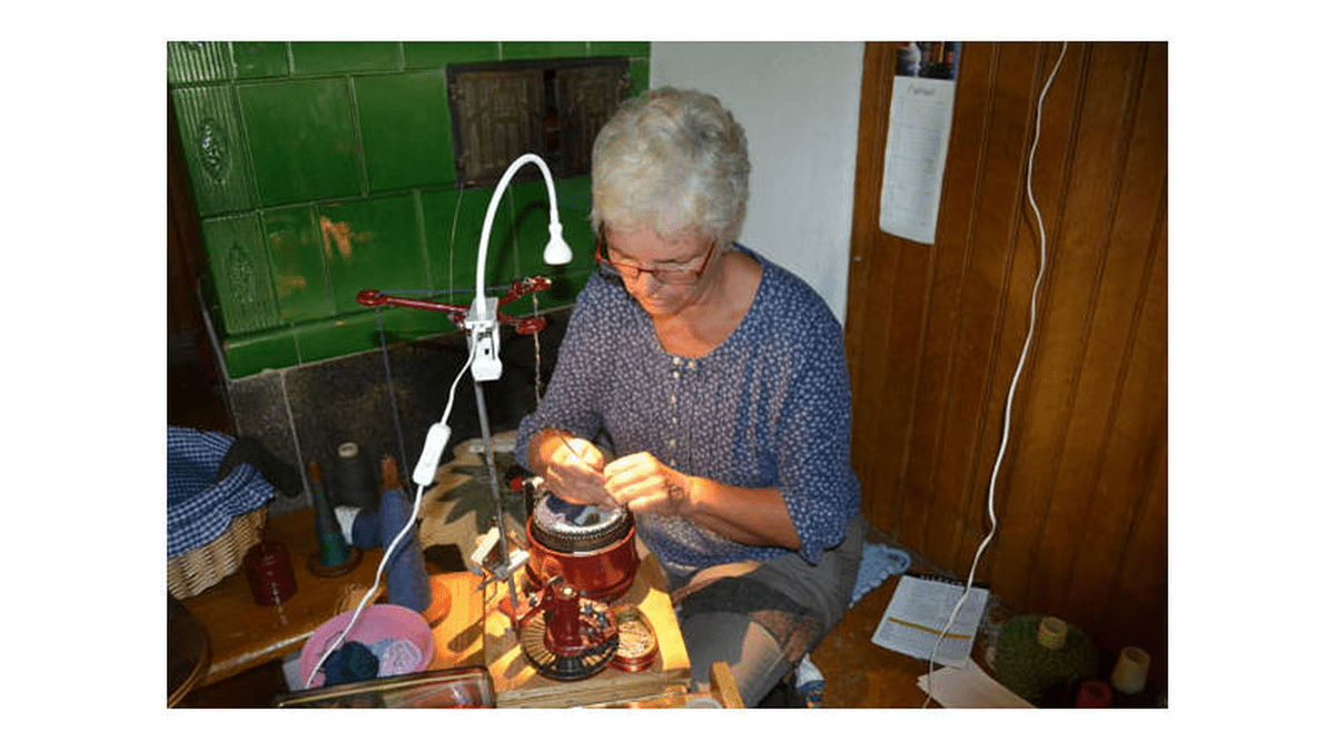 Handwerksvorführung: Sockenstricken mit der Maschine
