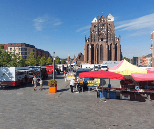 Jeden Dienstag und Freitag verwandelt sich der Marktberg in Prenzlau vor dem Ostgiebel der Marienkirche zum Wochenmarkt der regionalen und frischen Vielfalt. Der regionale Wochenmarkt lädt ein, die Vielfalt unserer Region hautnah zu erleben! Hier findet man von frisch gepflücktem Obst und Gemüse über handwerklich hergestellte Produkte bis hin zu köstlichen Leckereien aus der Umgebung. Frische Produkte direkt vom Erzeuger Die regionalen Produzenten verkaufen ihre Waren direkt an den Kunden. Handgefertigte Spezialitäten von lokalen Bäckern, Fleischern, Fischern und Imkern. Ein Treffpunkt für die Gemeinschaft Der Wochenmarkt ist nicht nur ein Ort zum Einkaufen, sondern auch Treffpunkt. Hier treffen sich Nachbarn und Freunde um das ein oder andere Pläuschchen zu halten. Während des Marienjahrmarktes, des Weihnachsmarktes sowie weiterer Aktivitäten auf dem Marktberg, findet der Wochenmarkt in der Friedrichstraße statt.