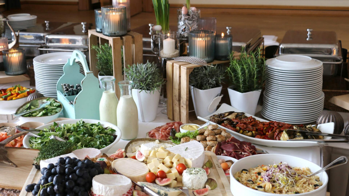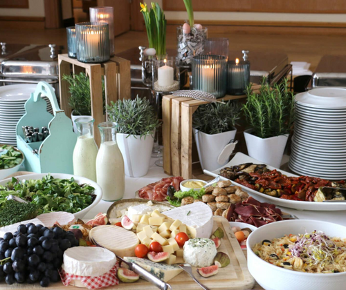 Süße und herzhafte Frühstücksvariationen, große Auswahl an Hauptgerichten, raffinierte Desserts, alkoholische und alkoholfreie Getränke, Kaffeespezialitäten.
