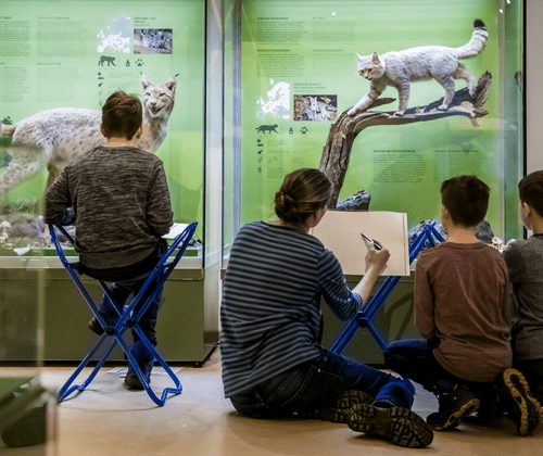 Hier kommen junge Museumsgäste den Tieren künstlerisch ganz nah. Auch scheue Exemplare halten still, bis das Werk vollendet ist. Der Fantasie sind keine Grenzen gesetzt und vielleicht werden nebenbei ganz neue Arten erfunden! Den spannenden Streifzug mit Papier, Pinsel und Stift begleitet die Kursleiterin Katrin Neubert aus Potsdam. Details einzelne Terminbuchung – max. 12 Teilnehmende jeweils Samstag von 10:30-12:30 Uhr einmal im Monat (außer in den Ferien) für Kinder von 8 bis 14 Jahren geeignet Skizzenheft und Lieblingsstifte dürfen gerne mitgebracht werden Nächster Termin 13. Dezember 2025 | Licht und Schatten - Tiere bei Nacht Termine und Themen 2026 Sa., 17. Januar 2026,10:30 bis 12:30 Uhr | Winterfell zeichnen – wuschelig warm Sa., 21. Februar 2026, 10:30 bis 12:30 Uhr | Höhlenmalerei – Tiere der Steinzeit Sa., 14. März 2026, 10:30 bis 12:30 Uhr | Von Bären und Bienen – Druckwerkstatt Sa., 18. April 2026, 10:30 bis 12:30 Uhr | Kunstvolle Nester – bebrütet, behütet, ausgeflogen Sa., 9. Mai 2026, 10:30 bis 12:30 Uhr | Schillernde Schuppen – Fische als Frottage Sa., 13. Juni 2026, 10:30 bis 12:30 Uhr | Aborigine Art – Tiere in Australien Sa., 4. Juli 2026, 10:30 bis 12:30 Uhr | fantastische Tiere auf Wappen und Flaggen Sa., 22. August, 10:30 bis 12:30 Uhr | Sommer, Sonne, Strand – Muschelkunst weitere Termine: 19. September, 10. Oktober, 14. November und 12. Dezember Weitere Informationen: Startseite des Naturkundemuseums Potsdam Informationen zu Eintrittspreisen