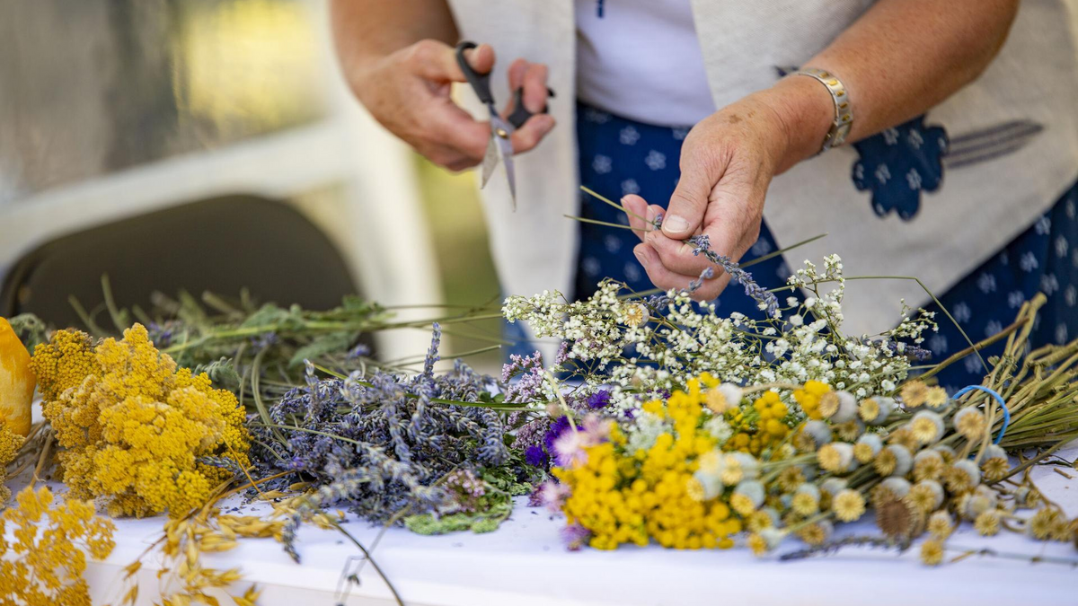 Bauern aus der Region ermöglichen den Einkauf erntefrischen Obstes und Gemüses für Küche und Speisekammer. An den Markständen locken u. a. frischgebackenes Bauernbrot, süßer Honig, Leinöl und duftende Kräuter. Das Schöne an diesem Markt ist, dass es nicht nur die fertigen Produkte zu kaufen gibt, sondern auch Einblicke in jahrhundertealte Techniken und Gewerke gewährt werden, die vielfach schon fast vergessen sind. So kann man der Weberin am Webstuhl über die Schulter sowie den Trachtenstickerinnen und -stickern auf die Finger schauen. Töpfer, Muldenhauer, Reetdachdecker zeigen, wie ihre Produkte entstehen. Man kann erfahren, wie Leinöl entsteht oder Seile einst hergestellt wurden. Sehenswert sind auch die Flachsverarbeitung, das Binden einer Erntekrone und das Packen eines Heuschobers (Samstag ab 14 Uhr). Ein buntes Rahmenprogramm präsentiert Traditionen, Trachten, Tänze und Musik. Am Samstag kann bis in die Nacht getanzt und gefeiert werden.