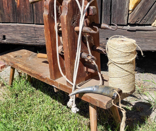 Ob zum Anbinden der Tiere oder zum Festzurren der Ladung auf dem Kahn: überall brauchten die Bauern früher Stricke und Seile. Wie vor 100 Jahren drehen wir gemeinsam an unserer alten Seilermaschine und stellen aus dünnen Fäden ein paar richtige Seile her. Euer selbst gedrehtes Seil dürft ihr natürlich behalten.