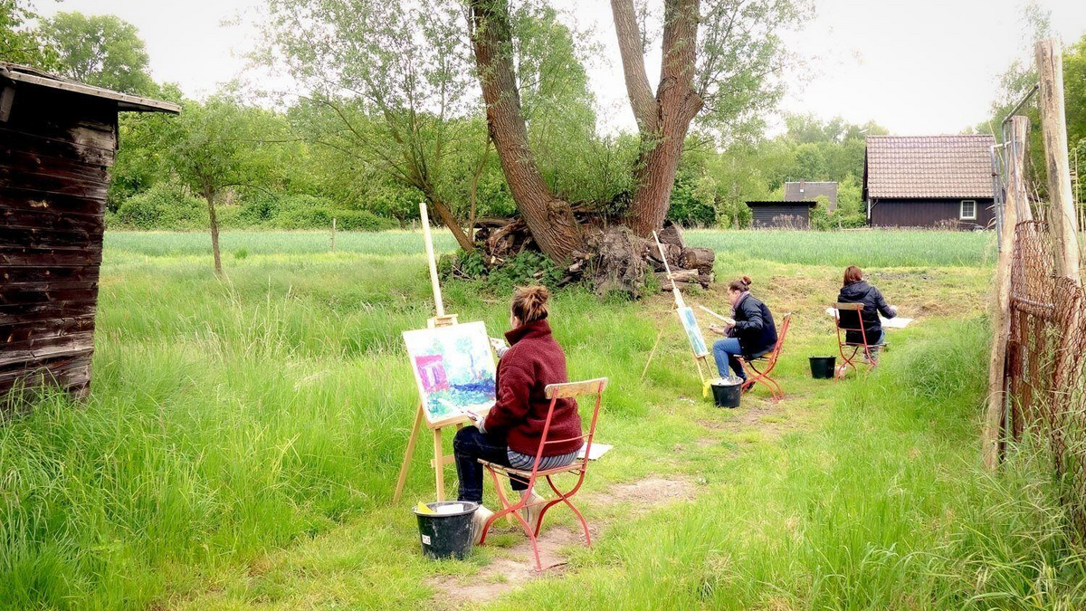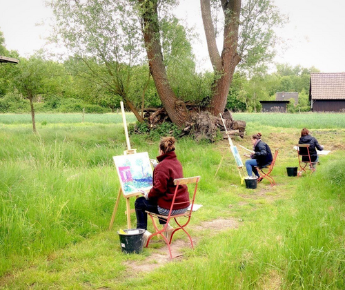 Der Kurs bietet ein freies experimentieren mit flüssigen Gouachefarben und Pinseln in der Natur an, wie es die Maler zur Zeit des Impressionismus liebten. Unter Anleitung werden farbige Pinseltupfen zum Zeugnis des Augenblicks. Für diese Technik bedarf es keiner Vorkenntnisse. Wer aus klassischen Malmustern aussteigen oder einfach nur entspannen möchte, ist herzlich von der Kursleiterin (Kreativitätspädagogin) eingeladen. Dem Wetter angepasste Kleidung ist empfehlenswert. Der Kurs findet im Freien statt und nur wenn es nicht regnet. Anmeldung erforderlich
