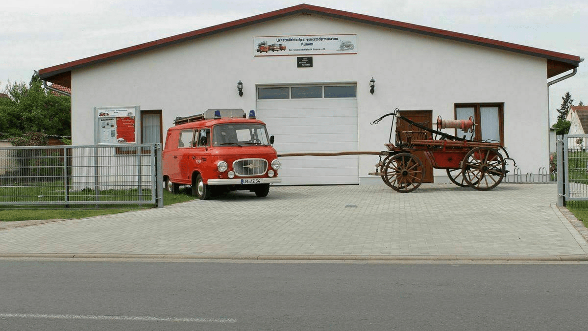 Der Feuerwehrhistorik Kunow e. V. lädt zur Besichtigung des Feuerwehrmuseums ein. Dargestellt wird die Entwicklung des Brandschutzes von den Anfängen bis heute. Erfahren Sie, wie Brände in vergangenen Zeiten gelöscht wurden und wie sich das Feuerwehrwesen entwickelt hat. Auf Anfrage werden für Gruppen auch gern gesonderte Termine für die Besichtigung vergeben. Für Vorschulgruppen bzw. Grundschulklassen besteht die Möglichkeit nach Absprache einen organisierten Wandertag im Museum zu verbringen, bei dem den Kindern das Museum auf kindgerechte Art vermittelt, eine Brandschutzerziehung durch Fachpersonal durchgeführt und verschiedene Spiele gemacht werden.