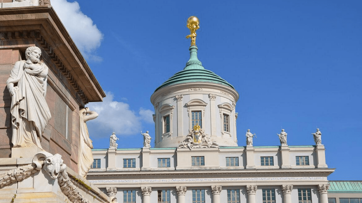 HAUSFÜHRUNG: Es ist eines der markantesten Bauwerke Potsdams – mit dem die Stadtsilhouette prägenden Turm und seiner goldenen Atlasfigur. Und es ist ein Ort der Potsdamer Geschichte. Architekturhistoriker Thomas Sander nimmt Sie auf eine spannende Tour von der eindrucksvollen Fassade über den historischen Gewölbekeller bis hinauf in den Turm mit Blick über den Alten Markt. Freuen Sie sich auf die interessante Baugeschichte, bei der Friedrich II. eine wichtige Rolle spielte, die bemerkenswerte Architektur und spannende Einblicke in die bewegte Geschichte hinter der Fassade – mit einigen Kuriositäten. Bitte beachten: die Führung ist nicht barrierefrei (es gibt leider keinen Fahrstuhl für die Etage zum Turm.)