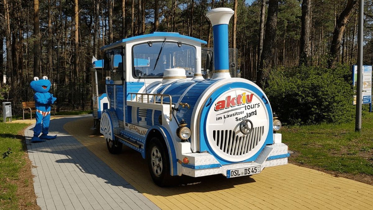 Alle kleinen Abenteurer an Bord! Diese unterhaltsame Fahrt führt die Kinder bis zur Schleuse am Koschener Kanal und von dort aus zum "Rostigen Nagel". Kleine Entdecker können den Aussichtsturm erklimmen, bevor es mit der Seeschlange wieder zurück zum Familienpark geht.