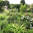 Bestehende Strukturen eines alten Bauerngartens wurden behutsam wiederbelebt und mit neuen Elementen bereichert. Zwischen zwei Obstwiesen und dem Gemüsegarten finden Sie pastellfarbig komponierte Blumenbeete und mittendrin lauschige Plätze zum Verweilen. Malerei, Zeichnung und Collagen zum Thema werden im Atelier präsentiert. Durch Ausgleichsmaßnahmen sind 0,5 ha Land hinzugekommen, wo eine Streuobstwiese mit Vogelschutzhecke entstehen werden.