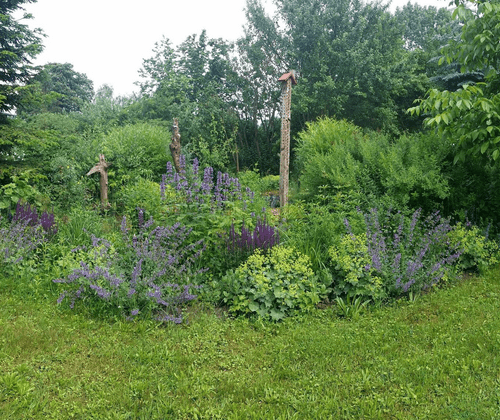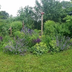 Ein Garten im Werden, der seit 2014 wieder naturnah gestaltet wird. Mit Räumen zum Wandeln und Ruhen in verschiedenen Stimmungen, Teich, Nutzgarten zur Selbstversorgung mit alten, samenfesten Gemüsesorten, alten Obstbäumen, Inselbeeten, Benjeshecken, alles eingebettet in das waldarme, feldreiche Niederungsgebiet des Köhntop.
