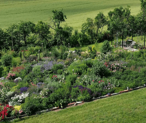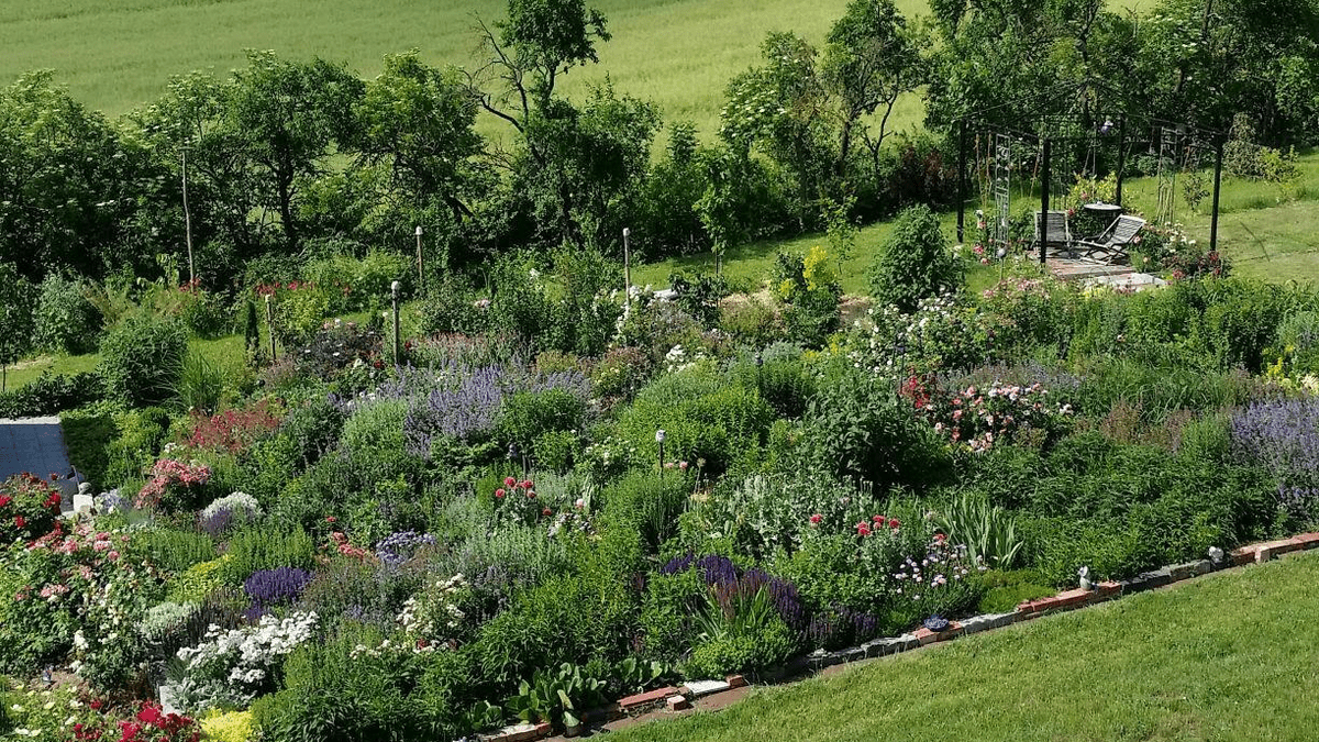 Im Nordosten der Uckermark entsteht seit 2016 auf 5.000 m² in Hanglage ein naturnaher Garten mit angrenzender Streuobstwiese mit umgebender Wildobst- und Beerenhecke nebst Vogelschutzhecke. Ein Rosen- und Präriebeet lädt zum Verweilen ein. Werfen Sie einen Blick auf Baumraritäten und weniger bekannte Obstgehölze, die sehr gut mit unserem Klima zurechtkommen. Tipp: festes Schuhwerk tragen!