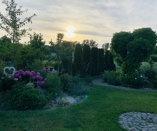 Mit viel Liebe zum Detail angelegter Garten in Grünow. Im Garten befinden sich verschiedene Rosenarten, Lavendel, Schmetterlingsflieder, Buchsbäume, Hortensien in verschieden Arten, ein kleiner Teich und viele weitere mit Liebe gestaltete kleine Details zum Entdecken und Freude haben. Der innovativ angelegte Garten verleiht Ruhe und Wohlbefinden, in der heutigen Zeit einfach gut für Körper und Geist.