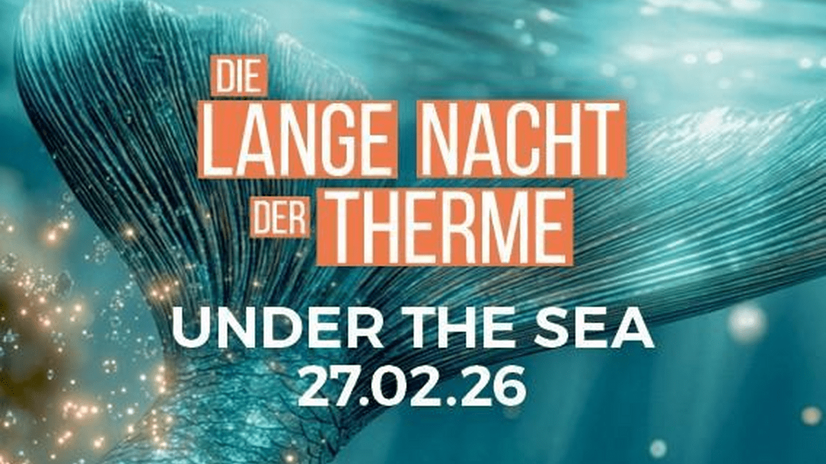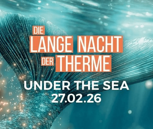 Am 27. Februar 2026 ist es wieder so weit! Die beliebte Veranstaltungsreihe „Lange Nacht der Therme“ lädt zum Verweilen in der Therme und Saunalandschaft bis spät in die Nacht ein. Das Motto lautet dieses Mal „Under the Sea“. Die Thermalsole-Badelandschaft und der Saunabereich sind an diesem Tag wieder bis 24 Uhr geöffnet und es wird wieder etliche Attraktionen für Euch geben. Der Saunabereich ist am 27.02.2026 ebenfalls bis 0:00 Uhr geöffnet und es gibt einen thematisch angepassten Aufgussplan mit Event-Aufgüssen. Merkt Euch den Termin schon einmal im Kalender vor!