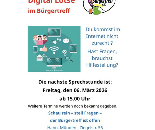 Die Digital Lotsen Sprechstunde im Bürger-Treff Hann. Münden bietet allen Interessierten eine einzigartige Gelegenheit, mehr über die digitale Welt zu erfahren und sich individuell beraten zu lassen. Inmitten der malerischen Umgebung von Hann. Münden, im Herzen des Weserberglands, finden Technik-Affine und Neugierige einen Treffpunkt, an dem sie Antworten auf ihre Fragen zur digitalen Technologie erhalten können. Besucher der Sprechstunde können nicht nur wertvolle Tipps und Tricks zu digitalen Anwen- dungen, Smartphones oder sozialen Medien sammeln, sondern erleben auch die herzliche Atmosphäre einer Gemeinschaft, die offen für Austausch und Vernetzung ist.