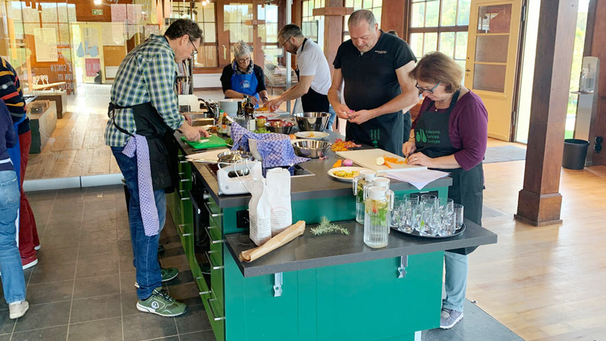 #### Veranstaltung im Erlebnis.Genuss.Zentrum des Freilichtmuseum Beuren Das Genussteam des Fördervereins Freilichtmuseum Beuren kocht - Sie probieren. Das ehrenamtliche Genussteam des Fördervereins Freilichtmuseum Beuren bringt alte Sorten zurück auf den Teller und lässt Sie den Geschmack verloren geglaubter Kultursorten neu entdecken. Von 12 bis 15 Uhr präsentiert und bietet das Genuss-Team in der Schauküche des Erlebnis.Genuss.Zentrums Häppchen zum Probieren an. Rezepte und Informationen über die vorgestellten alten Sorten können mitgenommen werden und laden zum Nachkochen ein. Kommen sie vorbei, lassen Sie sich inspirieren und verführen.