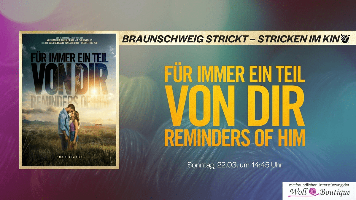 Schon von dem neuesten Trend gehört? Die Meisten stricken Zuhause und haben nebenbei den Fernseher oder das Tablet laufen. Wie schön wäre es mit vielen anderen Strickern und Strickerinnen im Kino zu sitzen und das gemeinsam zu erleben?