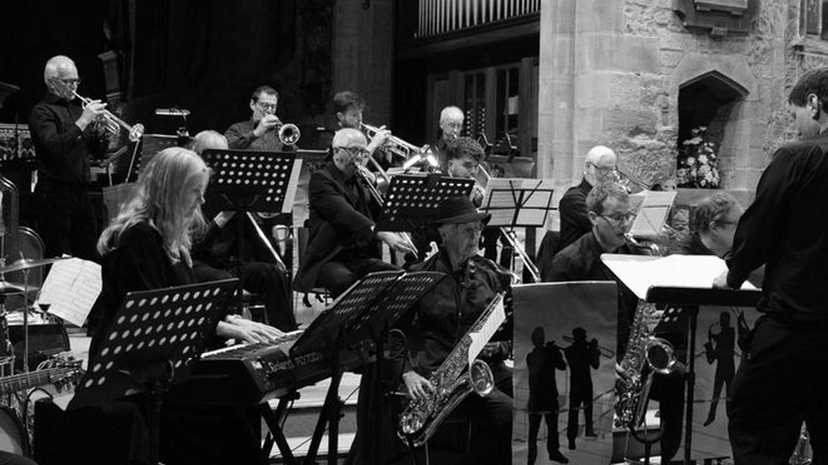 Die Monmouth Bigband aus Wales spielt ein Konzert mit Bigband-Klassikern (Count Basie/Duke Ellington/Buddie Rich) und modernen Kompositionen. Durch einen Kontakt mit dem Trompeter Steffen Dix aus Waldbronn ist es der Jazzinitiative gelungen, eine hervorragende Bigband nach Schwetzingen zu holen. Die Monmouth Big Band aus dem gleichnamigen Ort in Wales hat eine Partnerschaft mit Waldbronn bei Ettlingen, und Steffen Dix, der auch im Jazzclub Ettlingen aktiv ist, ist voll des Lobes für diese Band. Freuen Sie sich auf eine gut gelaunte, energetische, spielfreudige und kompetente Bigband unter der Leitung von Gareth Roberts, die alle Klassiker von Duke Ellington, Stan Kenton über Count Basie und Buddy Rich bis zu zeitgenössischen Titeln im Repertoire hat. Um Spenden wird gebeten.