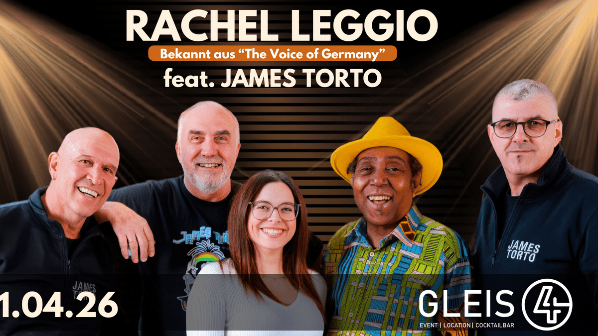 Mit ihren italienischen Wurzeln und einer tiefen Leidenschaft für Musik bringt Rachel Leggio die Bühne zum Beben wie kaum eine andere. Music by: Rachel Leggio feat. James Torto mit Band Location: Gleis 4, Bahnhof 4 | 72458 Albstadt Ab 21 Uhr In der 15. Staffel von „The Voice of Germany“ hat sie sich bis kurz vor die Team Fights gekämpft und dabei überzeugt. Aktuell begeistert sie gemeinsam mit James Torto live ihr Publikum mit einer mitreißenden Mischung aus kraftvollen Pop- und gefühlvollen Soul-Klängen, die direkt ins Herz gehen. Ihre mitreißende Energie sorgt für Stimmung und berührt jeden Zuhörer.