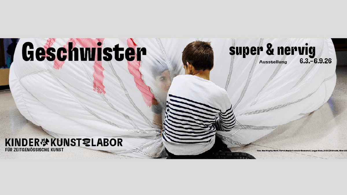 Geschwister können ein Team sein oder ein täglicher Stresstest. Ob verwandt oder selbst gewählt – oft geht es um beides. Was bedeuten Geschwisterlichkeit und Kindsein heute? Das KinderKunstLabor geht dieser Frage nach und präsentiert mit der Ausstellung Geschwister – super & nervig Werke international renommierter Künstler:innen. Die gezeigten Positionen verweisen auf die besondere Nähe von Geschwistern: darauf, wie sie zusammenarbeiten, im Zusammenspiel etwas erfinden – aber auch darauf, wie sie teilen, etwa die Anerkennung für gemeinsam geschaffene Arbeiten.