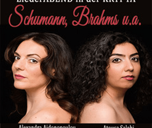 Erleben Sie einen besonderen Liederabend in der einzigartigen Atmosphäre der Krypta der Peterskirche. Die Mezzosopranistin Alexandra Aidonopoulou und die Pianistin Atousa Salehi gestalten ein fein abgestimmtes Programm mit Liederzyklen und ausgewählten Liedern aus der Romantik und dem spanischen Repertoire.
