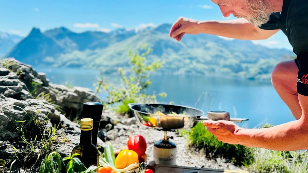 Dort wartet bereits das Team von Bergkroft mit seiner mobilen Outdoorküche. Mitten in der Natur entfaltet sich eine ganz besondere „Genussroas“: regional, kreativ und mit viel Gespür für hochwertige Zutaten.