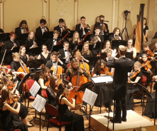 Der Höhepunkt des Konzertes wartet im zweiten Teil mit Tschaikowskys 5. Symphonie in e-Moll. In diesem monumentalen Werk hat sich der Komponist mit der Frage des Schicksals und des Glaubens auseinandergesetzt, weshalb sie auch öfters als „Schicksalssymphonie“ bezeichnet wird. Die 4 Sätze sind durchzogen von einem gemeinsamen Leitthema – dem „Schicksalsmotiv“. Der erste Satz beginnt mit genau diesem Motiv aus dem Nichts – völlige Niedergeschlagenheit und Zweifel bilden die Grundstimmung dieses Satzes. Der zweite Satz beinhaltet das wohl berührendste Hornsolo der Musikgeschichte, das von Tschaikowsky als „Lichtstrahl“ beschrieben wurde. Mehrere Ausbrüche höchster Leidenschaft werden letztlich grausam vom Schicksalsmotiv unterbrochen. Auch am Ende des unbeschwerten 3. Satzes – ein langsamer Walzer – erklingt jenes Motiv. Im Finale erklingt das Schicksalsmotiv nun verändert, es ist nicht mehr niedergeschlagen, sondern majestätisch, in Dur statt Moll. Nach dem rasanten Hauptteil, der endlich bestimmt und siegessicher ist, erklingt das Motiv ein letztes Mal als bombastischer Triumphmarsch und in einem wirbelnden Rausch endet Tschaikowsky sein Meisterwerk.