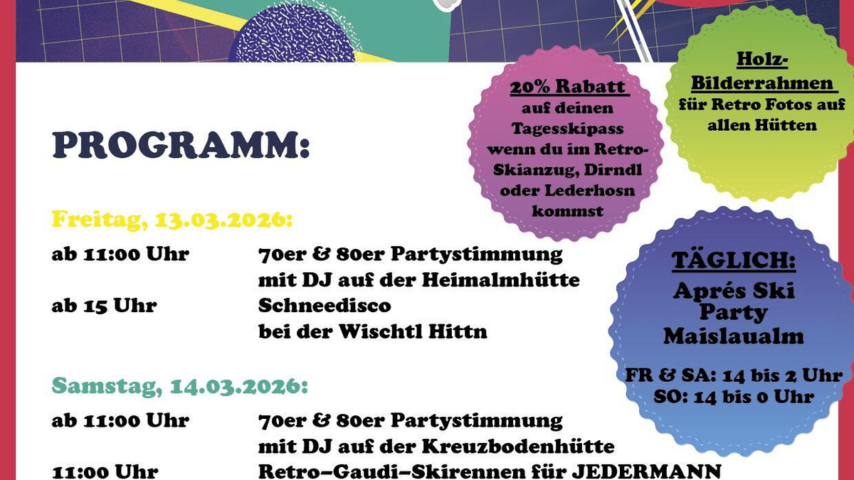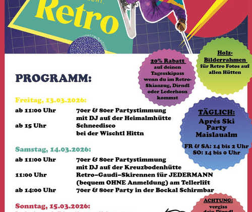 Pack dein Retro-Outfit ein und erlebe „Ein Winter wie damals“ im Raurisertal: Sonnenskilauf, nostalgisches Hüttenflair und jede Menge Spaß – ein Wochenende wie aus einer anderen Zeit.