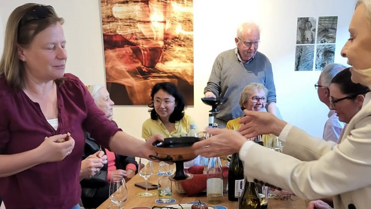 Der Vortrag gibt einen unterhaltsamen Einblick in Tischkultur und Trinkgenuss in der griechischen und römischen Antike und wir werden auch Wein so trinken, wie es damals üblich war.  Die Referentin Dr. Polly Lohmann, Klassische Archäologin (Antikensammlung der Universität Heidelberg) wird auch Repliken von antiken Trinkschalen am Abend vorstellen.  In der griechischen und römischen Antike spielte der Genuss von Wein bei bestimmten gesellschaftlichen Anlässen eine wichtige Rolle: Beim griechischen **_symposion_** der Männer wurde diskutiert, musiziert, getrunken und gespielt. Dabei wurde der Wein stets mit Wasser gemischt und in großen Trinkschalen herumgereicht – dafür war Selbstkontrolle beim Weingenuss gefragt. Einige Repliken solcher griechischen Trinkschalen aus dem 6. Jh. v. Chr. aus der Antikensammlung der Universität Heidelberg werden wir gemeinsam anschauen und ausprobieren. Auch beim römischen Gastmahl, dem **_convivium_**, kam man zusammen, um sich zu unterhalten und zu amüsieren. Gerne ging man vorher gemeinsam zum Saunieren in die Therme und ließ es sich anschließend bei Wein und exklusiven Speisen gutgehen. Welche „red flags“ und „green flags“ es dabei gab, berichten uns lateinische Autoren, und ein best-of dieser Texte führen wir uns gemeinsam zu Gemüte. Zwischendrin schauen wir immer wieder auf die Winzer in der Antike. Wie wurden die Reben angebaut? Wie wurde der Wein ausgebaut? Wie beliebt war der Beruf des Winzers im alten Rom? Was wissen wir darüber?