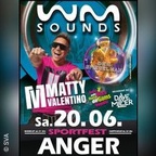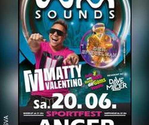 Das Sportfest in Anger lädt am Samstag zu einem ausgelassenen Abend voller Live-Acts und guter Stimmung ein. Ab 21:30 heizen WMsounds inkl. Spiegelmann ein! Stargast Matty Valentino wird die Stimmung weiter anheizen und das Zelt zum Beben bringen!