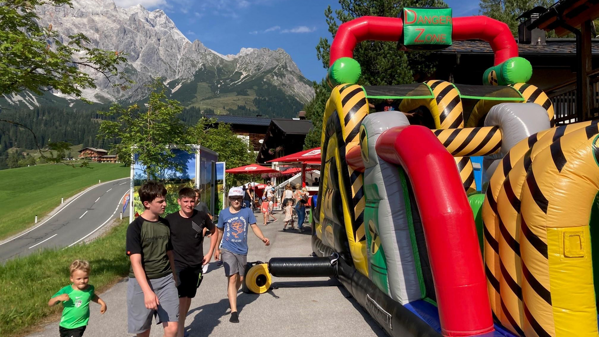 oben End mit "DJ Aigei"Natürlich gibt es auch für unsere kleinen Gäste ein Kinderprogramm mit Kletterturm der Bergrettung, großer Hüpfburg und Kinderschminken.