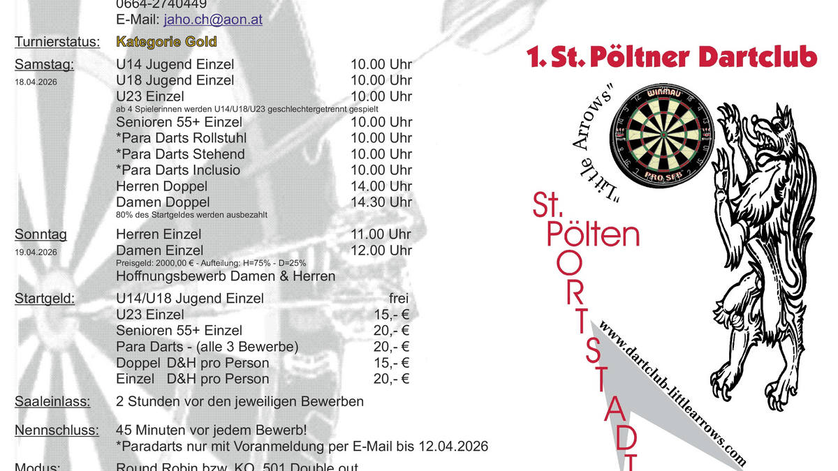 Link zum Folder vom 37. Int. St. Pöltner Steel Darts Open unter: