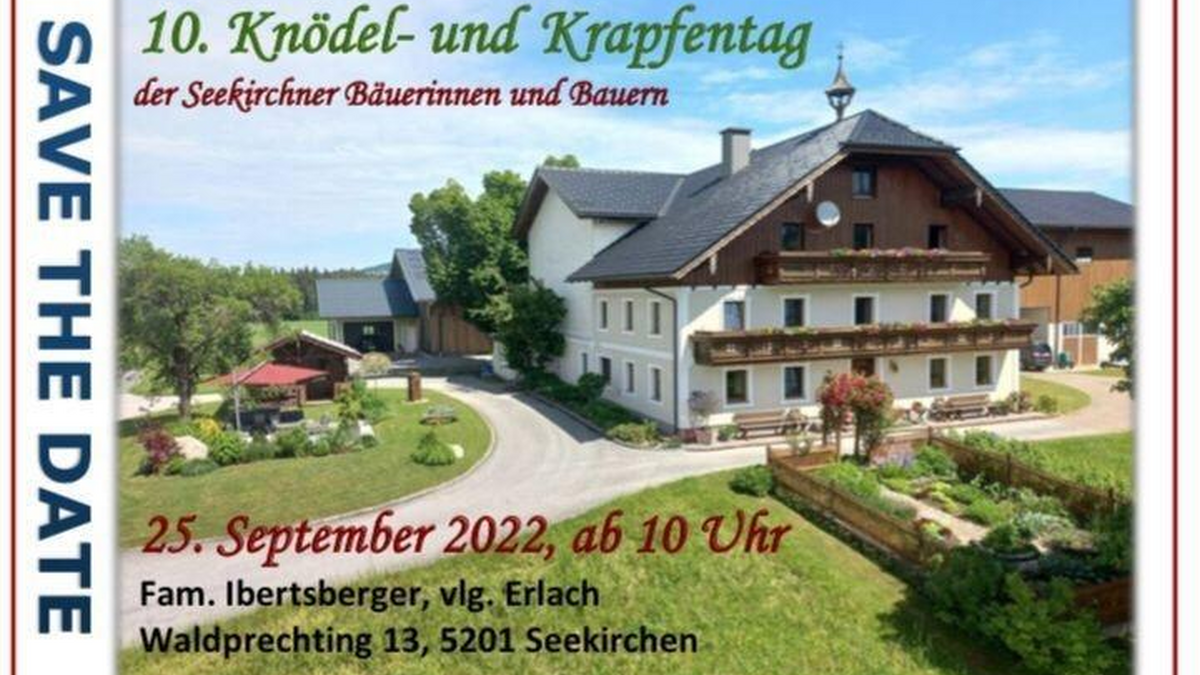 Am Sonntag, den 27. September, lädt die Seekirchner Bauernschaft ab 10 Uhr zu einem genussvollen Herbsttag ein. Geboten wird eine vielfältige Auswahl an Knödel- und Krapfenspezialitäten aus regionaler Produktion. Ein abwechslungsreiches Kinderprogramm sorgt für Unterhaltung bei den jüngsten Besucherinnen und Besuchern, musikalische Beiträge schaffen eine stimmungsvolle Atmosphäre. Die Veranstaltung findet bei jedem Wetter statt.