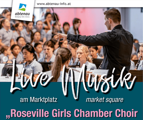 Ein besonderes Erlebnis erwartet Sie: Livemusik mit dem „Roseville Girls Chamber Choir & Chamber Orchestra“ aus Australien. Freuen Sie sich auf beeindruckende Chorklänge und orchestrale Highlights unter freiem Himmel. Die jungen Musikerinnen bringen internationale Konzertatmosphäre direkt auf den Marktplatz von Abtenau und sorgen für Gänsehaut-Momente.
