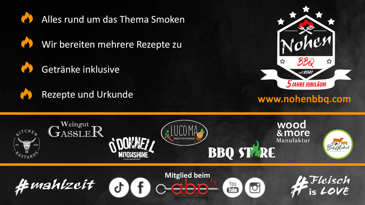 In diesem Grillkurs lernst du den richtigen Umgang mit Rauch auf verschiedenen Grillgeräten. Dabei vermittle ich dir die wichtigsten Grundlagen und zeige dir, worauf es beim Smoken wirklich ankommt.