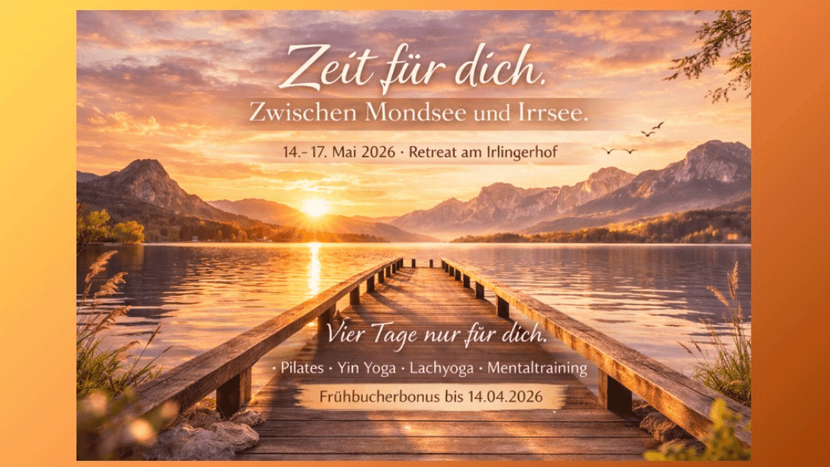 Das Retreat findet in der familiären Pension Irlingerhof in Tiefgraben statt und verbindet Bewegung, Entspannung und persönliche Weiterentwicklung. Die Teilnahme beinhaltet das Retreat-Programm sowie drei Nächte mit Frühstück. Zimmer sind direkt bei der Pension Irlingerhof zu buchen. Ideal für alle, die sich eine bewusste Pause vom Alltag gönnen möchten.