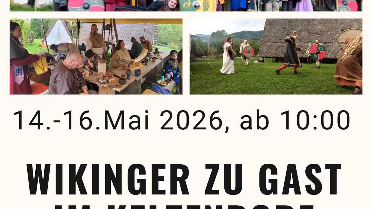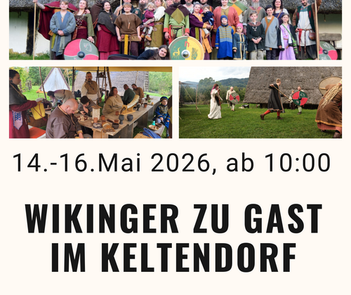 Von 14. bis 16. Mai wird das Keltendorf Mitterkirchen zum Treffpunkt nordischer Gäste: Das Uruz Thing schlägt sein Lager auf und lädt zu einem besonderen Wikinger-Wochenende ein. Auch wenn sich Hallstattkelten und Wikinger historisch nie begegnet sind, gibt es spannende Gemeinsamkeiten ebenso wie klare Unterschiede – genau diesen widmen sich tägliche Sonderführungen um 16:00 Uhr.  Besucher:innen können den Alltag im Lager hautnah miterleben – vom gemeinsamen Brotbacken täglich um ca. 11:00 Uhr über Handwerk wie Holzschnitzen, Lederarbeiten, Weben oder Schmieden bis hin zu Kampftrainings mit Schild, Speer und Schwert. Geschichten über alte Götter, Rituale und das tägliche Thing um ca. 14:00 Uhr machen Geschichte lebendig. Kommt vorbei und taucht ein in eine faszinierende Welt voller Begegnungen und Eindrücke!