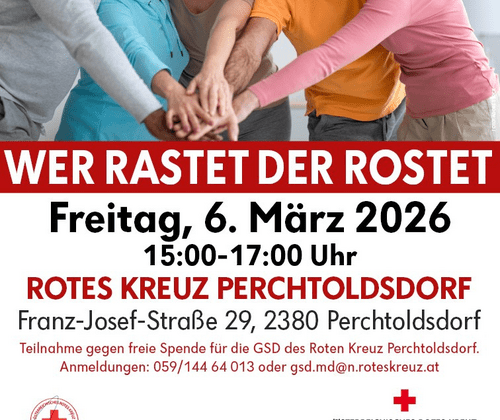 Das Rote Kreuz Perchtoldsdorf, Gesundheits- und Soziale Dienste laden zu unterhaltsamen Seniorentreffen ins Rotkreuz-Haus, Franz-Josef-Str. 29, 2380 Perchtoldsdorf.