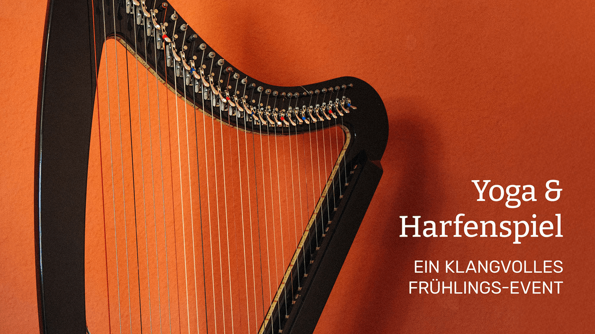 ›Yoga & Harfenspiel‹ ist ein klangvolles Frühlings-Event: Dich erwartet eine ruhige Yogaeinheit mit sanften Bewegungen, Raum zum Durchatmen und live gespielten Harfenklängen.