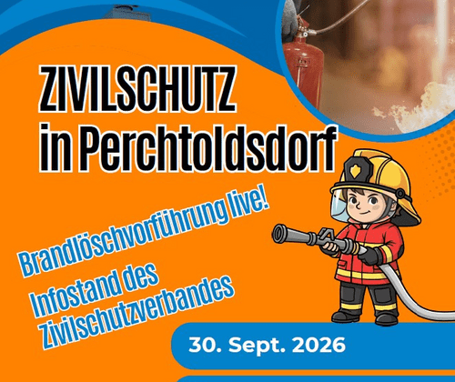 Besuchen Sie den Infostand des Zivilschutzes, Ortsstelle Perchtoldsdorf. Versuchen Sie ein Feuer zu löschen und informieren Sie sich über Blackout, Brandschutz, AT-Alert u. v. m.