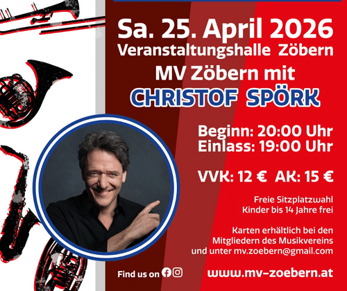 Karten sind bei allen Mitgliedern des Musikvereins sowie per E-Mail unter mv.zoebern@gmail.com erhältlich.